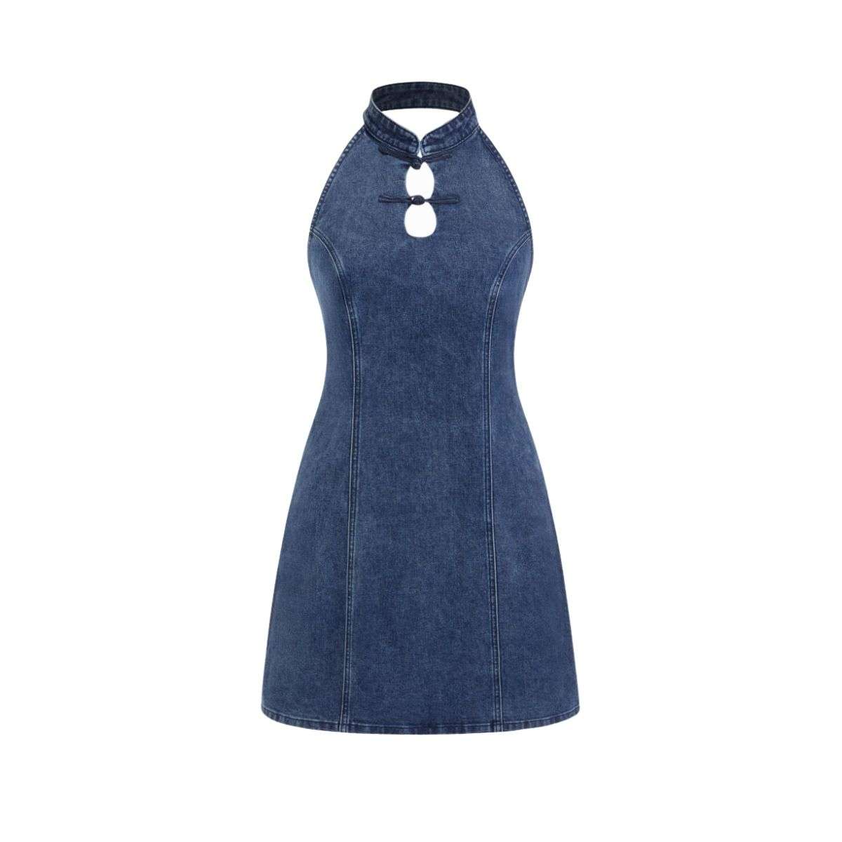 - Unique mandarin collar adds a contemporary, fashion-forward edge that sets this denim dress apart from basic styles.