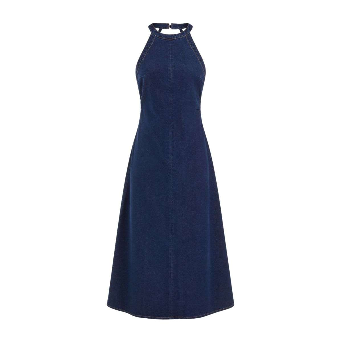 - Halter neck design shows off the collarbone for a sleek, elegant look; A-line silhouette offers a flowy fit, while high-waist design enhances body proportions and flatters all figures.