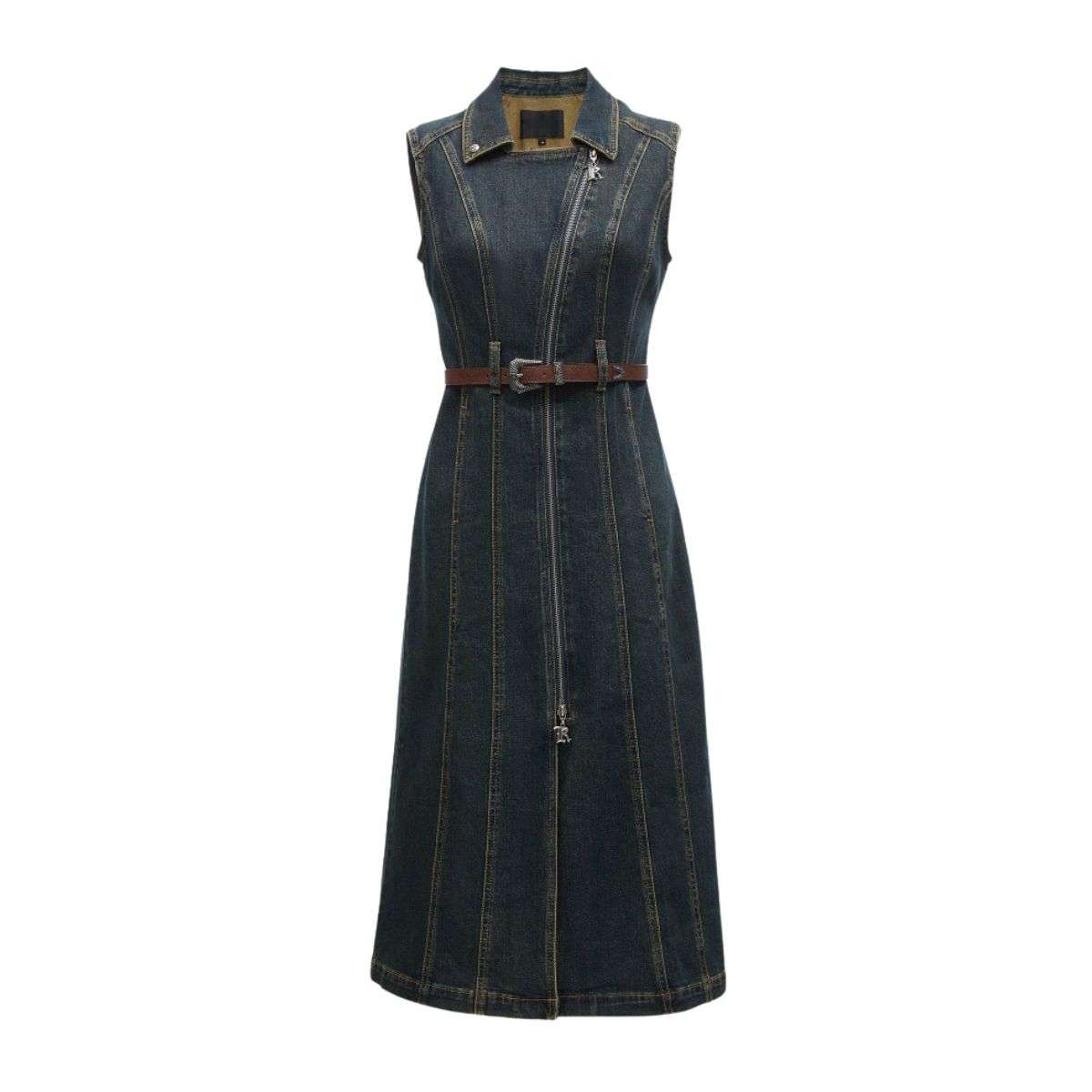 - Turn-down collar and front zip placket for vintage style