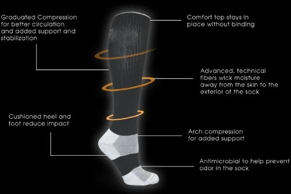 Compression socks use targeted pressure to improve circulation and support muscles, reducing swelling and fatigue.